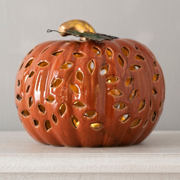 Gift boutique pumpkin decorations for halloween and thanksgiving 3 mini ceramic lighted pumpkins home party holiday decor figurines for fireplace mantle shelf quality ceramic statues 5 0 out of 5 stars 5. Shop for the best halloween pumpkin decorations at grandin road to make this year s holiday a tremendous success. Dark ceramic pumpkin with tendrils is a great accent to choose this fall. Pumpkins 77 results filter results.