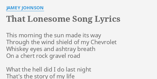 That lonesome song jamey johnson d that mornin sun made its way c g through the windshield of my chevorlet cadd9 walk down whiskey eyes and ashtray breath a on a chert rock gravel road d what the hell did i do last night c g thats the story of my life cadd9 walk down like tryin to remember words d to a song nobody wrote a g and its sad and its long g a and cant.